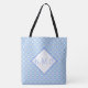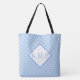 Bolsa de tetas elegante con un patrón en azul, el fondo blanco puede ser personalizado a cualquier color, y las iniciales monocromáticas pueden ser personalizadas para usted o un regalo.