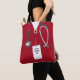 Bolsa creativa de enfermería con exfoliaciones de hospital rojas y arte de estetoscopio. Para personalizar, edita texto para añadir nombre.