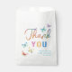 Envíe a los huéspedes a casa con un dulce agradecimiento en estas extravagantes bolsas de favores para la ducha de mariposas. Decoradas con vibrantes mariposas acuarelas y coloridos textos de "Gracias", estas bolsas añaden encanto a su mesa fiesta. Perfecto para los dulces, pequeños regalos o regalos personalizados —personalizados con el nombre y la fecha de la futura madre.