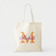 Bolsa de algodón morado y naranja boda con monograma personalizado. Diseño monogramado de estilo de moda vintage. Personalizar del séquito de novias; damas de honor, chicas florales, criada de honor, madre de la novia, madre del novio, novia del equipo, invitados, etc. Tipografía de escritura elegante por nombre. Nombre rústico inicial. También es agradable para chicas soltera de fin de semana o favores de fiesta en el matrimonio, ducha de novia, compromiso o aniversario.
