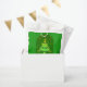 El intrincado fondo del nudo celta esboza un colorido árbol navideño de vidrio manchado con luces brillantes.