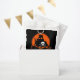 un diseño de temática pirata con una gran luna naranja de Halloween y un cráneo jolly roger y ballenas cruzadas en la vela de un barco pirata. el botín se escribe en letras negrita naranja y negro. Para esos trucos o dulces especiales o para esa fiesta de Halloween.