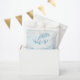Pase los favores matrimoniales para sus invitados con un juego de bolsa favorita de la boda de delfines azules. El diseño de la bolsa incluye un delfín de estilo metálico con un fondo de olas del océano silencioso adornado con elegantes rollos. Personaliza con los nombres del novio y la novia junto con la fecha del boda. También hay material de boda adicional disponible con este diseño.