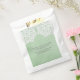 Bolsas de Favor de la Boda Elegante, sencillas y sofisticadas, con un motivo de doily de encaje blanco sobre un fondo de papel de imitación de color verde claro. Estas bolsas clásicas y elegantes son perfectas para un boda rústico. Fácil de personalizar con los detalles de su boda. Haga clic en "Personalizar" para encontrar más opciones de personalización.