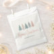 Bolsa de favoritas de vacaciones con árboles de Navidad pastel y escritura moderna y elegante.