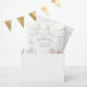 Bolsas de Favor del Cumpleaños con un adorable unicornio con alas, que está rodeado por lindas fotos de un castillo mágico, nubes y conglomerados festivos.