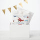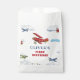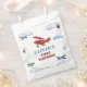 ¿Enviar a los invitados de cumpleaños de tu avión con favores? Añade el toque perfecto a tus bolsos de favoritas de cumpleaños de avión con etiquetas de cumpleaños vintage. Edite y personalice fácilmente los detalles de tu bolso de favorita de avión con el nombre de tu pequeño. Estos bolsos de favores de aeroplano para niños le dan un toque especial y personalizado a sus coloridos favores de cumpleaños para los invitados de la fiesta de cumpleaños. La colección PERCY presenta un fondo blanco con cielos turbios y aviones vintage en rojo, azul y verde, con carteles de avión y coloridas banderas vintage que ondean los cielos. Serif manuscrito y negrita en azul y rojo con texto editable.