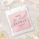 Bolsas Rubor Pink Bridal Shower Favor Bags en Rubor color rosa y simple caligrafía de fondo de texto. Más productos con este diseño están en la colección de abajo.