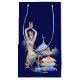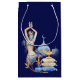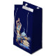 Bolsas de regalo de las noches árabes con hermosos ilustraciones azules y dorados sobre un fondo azul real. Estas lindas bolsas de regalo de temas de la noche árabe se personalizan fácilmente para tu evento agregando texto o cambiando el tamaño y el color de fondo.