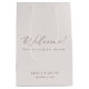 Esta minimalista bolsa de regalo decorada con una tipografía romántica y elegante. Añadir elegancia - puede cambiar los identificadores a la cinta satinada y agregar etiquetas de nombre de invitados. Para cambiar nombres, fecha y texto de bienvenida, haga clic en "Personalizar". ¡Atención! Al cambiar el tamaño, debe cambiar la posición de los elementos inferiores. Para mover el texto o cambiar el tamaño, el tipo de letra o el color, haga clic en "Haga clic para ver más personalizar". Diseñado para coordinar con para la colección de invitaciones a bodas "ETHEREAL". Ver el enlace de la colección en esta página para ver todos los elementos coincidentes de este hermoso diseño o ver la colección aquí: https://bit.ly/2W3Hg9Z