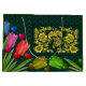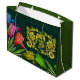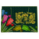 monograma elegante con fondo verde con hermosas flores y corazones de diferentes colores (azul, rosa y rojo) por un patrón elegante.
