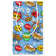 Bolsos de regalo con la temática de la historieta divertida. Coincidiendo con una gran bolsa de regalo, papel de envoltura y cinta en la tienda.
