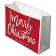 Feliz Navidad bolsos simples de regalo rojos y blancos con texto cambiable - puedes cambiar el nombre de la familia y el año.