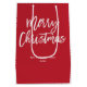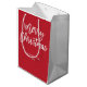 Feliz Navidad simple bolso de regalo rojo y blanco con texto cambiable - puedes cambiar el nombre de la familia y el año.