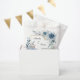 El diseño floral azul y turbio con marco dorado es perfecto para un boda primaveral o de verano y una hermosa manera de anunciar su gran día.