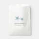 Estas bolsas personalizadas para bodas en la playa incluyen estofado acuático en tonos azules. Utilice los campos de plantilla para DIY el texto de su personalizado. Ordenar en pequeñas cantidades o a granel. Para ver la suite nupcial de destino correspondiente visite www.zazzle.com/dotellabelle Arte y diseño únicos de Victoria Grigaliunas