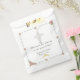 El diseño presenta la imagen suave de un crucifijo en el centro. El mensaje de agradecimiento de tu personalizable, además de los nombres de Bride y Groom y la fecha del boda, se muestran en un elegante tipo de letra Nuptial de color plateado justo debajo. La pequeña imagen de rosas rosadas adorna el borde. Diseñado para coordinar con la "Suite Rosa Nupcial Boda Católica Tradicional".