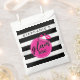 Añade tus artículos favoritos a esta moda de bolso personalizado de bienvenida de rayas blancas y negras para invitados o amigos. Perfecto para cumpleaños, duchas de novias o chicas nocturnos.