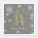 Añada un toque festivo a las reuniones de sus Navidades y fiestas de esta temporada navideña con un árbol de Navidad dorado y una servilleta Fiesta de copos de nieve. El diseño de la servilleta incluye un vibrante árbol de Navidad artístico con copos de nieve en caída y un fondo gris oscuro. También hay artículos de regalo y de vacaciones disponibles con este diseño.