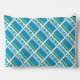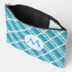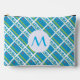 Un diseño de baldosas con la bandera o bandera de Aruba muestra en esta bolsa accesoria. Un círculo redondo, fractal, de cuadrados blancos squiggly tiene un lugar para una inicial para que puedas personalizar con un monograma. Excelente para viajeros. Puede hacer su viaje mejor ayudando con sus necesidades de embalaje.