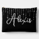Diseño de goteo de diamantes en negro con un nombre personalizado. El nombre se puede editar o eliminar. Se puede cambiar el color de fondo.