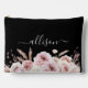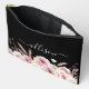 Boho, floral, regalo Nombre accesorio y bolsa de maquillaje muestra un elegante tipo de letra blanca con elegantes toques en un fondo negro limpio. Es el regalo perfecto para tu ser querido, diseñado para contener maquillaje y pequeños artículos esenciales.