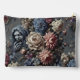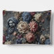 A hooded grotesque parts the florals like a curtain, peering through blooms of plum, ivory, and slate. Serpentine roots coil beneath, as if conjuring secrets from behind the veil.