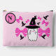 ¡Esta adorable Fantasma de Coquette es tan linda con sus pequeños gorras brujos y sus arcos rosas! ¡A las chicas miedosas, y a las chicas rosadas les encantará esta preciosa y festiva bolsa temática de Halloween! Esta bolsa de accesorios se puede usar con cualquiera de los lados, ya que la parte posterior se puede personalizar con tu monograma y también tiene un diseño realmente bonito. Haría un gran bolso/bolso de maquillaje/cosmético, una bolsa para el suministro de arte, una bolsa para el suministro escolar o una cartera personal. #summerween