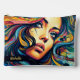 Esta es una divertida bolsa accesoria en un estilo de arte pop de la cara de una mujer con colores vibrantes. Esta bolsa puede usarse para una variedad de cosas como una bolsa de maquillaje, kit de viaje, funda de lápiz y más. El nombre de la bolsa es personalizable y haría un divertido regalo personalizado.