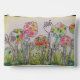 Flores caprichosas arreglan esta bolsa accesoria, creada con papel pintado de papel y flores y tallos dibujados a mano, todo un encantador trabajo de arte mixto.