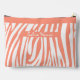Monograma, Funda de lápiz, plantilla personalizada. "Mujer de la moda" - Cartas. Color de color turquesa y rosa Color de coral Trazado Diseño a la moda del patrón de cebra de rayas. ForAccessories > Bolsas y vallas > Bolsas cosméticas y de tocador. Para ella, Chica, Mujer, Madre, Mamá, Abuela, Cumpleaños, Aniversario, Fiesta, Primavera, Verano 2026 Trend, Fiesta Tropical Sea Beach, Hermoso Regalo. Diseñar con plantilla de texto Personalizarlos agregando o cambiando el nombre.