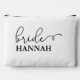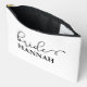 "Este accesorio de Novia / Equipo Novia y neceser de maquillaje presenta una elegante fuente de escritura en negro con florituras elegantes sobre un fondo blanco limpio. Es el regalo perfecto para tu novia, diseñado para guardar maquillaje y pequeños artículos esenciales. Tradicionalmente presentado en la cena de ensayo, este neceser será muy útil durante las primeras horas antes de la boda."