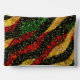 Un diseño festivo con olas de purpurina rojo, amarillo y negro.