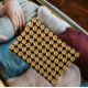 Bolsito Accesorio Grande Patrón floral de Dahlia amarillo en negro