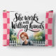 Un sereno ilustracion acuarela de una mujer alegre que tiende a un exuberante jardín, simbolizando la diligencia y el cuidado. El texto "Trabaja con manos dispuestas" es elegantemente incorporado, inspirando fe y devoción. personalizado con nombre.