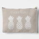 Este bonito tote de bolsitas de accesorio cosmético personalizado incluye piñas blancas clásicas sobre un fondo de beige suave y neutro. Personalice con su elección de nombre o texto especial en la parte frontal y posterior.