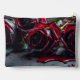 Las rosas negras y rojas en un fondo oscuro, con un pequeño chorrito de sangre, son perturbadoramente hermosas.