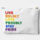 Live Bolsa Cosmética de Pouch Accesory Pouch con el orgullo de permanecer orgulloso en la tipografía moderna que dice "VIVO AMOR ABSOLUTAMENTE ORGULLOSO" en un diseño minimalista simple pero limpio. Diseño sencillo en colores de arcoiris del Orgullo que funciona muy bien para cualquiera.