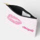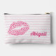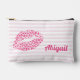 NewParkLane - Bolsa accesoria personalizada y atractiva, con tu nombre en tipografía divertida, dibujada a mano, y un beso de impresión de leopardo rosa, con un fondo de rayas rosadas. Fácil de personalizar en Zazzle con su propio texto para un diseño personalizado. Todos los estilos de texto, colores, tamaños se pueden modificar para adaptarlos a sus necesidades. Proteja esta colección para ver los elementos coincidentes.