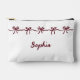 Bolso de viaje con escritura moderna para dama de honor con lazo de Borgoña presenta un borde de corbata con lazo elegante a lo largo del borde superior con un nombre de escritura personalizado centrado debajo. Este elegante bolso es perfecto para almacenar cosméticos, artículos esenciales de viaje, maquillaje o pequeños tesoros. Ideal para regalos de dama de honor, combina un diseño moderno con practicidad, lo que lo convierte en una adición hermosa y considerada a cualquier conjunto de regalos para la fiesta de la novia.🦋 Puede personalizar fácilmente el producto agregando su nombre para hacerlo completamente único. También puede cambiar la fuente a su gusto abriendo "Personalizar esta plantilla"> "Editar usando la herramienta de diseño".