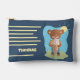 Cute kid pencil pouch featuring a brown bear on the front and an ice cream pattern on the back . Personalize it with the child's name .