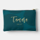 Chic turquoise green modern abstract accessory pouch with faux gold script and sans serif custom name. The perfect gift for her on her birthday for women who love chic and classy aesthetic. This accessory pouch is ready for you to customize and make it yours. All design elements can be changed to suit your needs better (font attributes and abstract art look and colour). Simply click the Personalize link and follow the instructions.