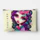Se trata de una divertida y artística bolsa accesoria con un caprichoso ilustracion de un chica de color morado, rosa y turquesa sobre un fondo amarillo claro. El nombre de la bolsa es personalizable y haría un gran regalo personalizado