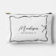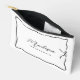 Un simple regalo de dama de honor con un guion manuscrito y tipografía modernista minimalista, enmarcado con un marco de garabato de cinta ondulada con lazo en un estilo dibujado a mano. Estilo coqueto informal y caprichoso. Estos divertidos y prácticos kits de maquillaje para damas de honor son perfectos para prepararse con la novia el gran día. Un pequeño regalo lindo para ayudar a tu equipo a sentirse fabuloso mientras se ríen, beben y toman fotos inolvidables de "preparación" juntos. Regálalos en la despedida de soltera con anticipación.