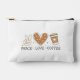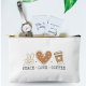 Graciosa bolsa accesoria con la frase Peace Love Coffee. Un regalo alegre y perfecto para los amantes del café. Bolsa accesoria feliz y cómica.
