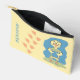 Sweet kid pencils pouch featuring a yellow duckling wearing eyeglasses and carrying a book on the front and a green and yellow striped pattern on the back . Personalize it with the child's name .