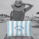 La bolsita de accesorios personalizada perfecta para sus necesidades básicas... Bandas azules de cabaña con el personalizado "The Beach Club" escudo, afligido por el verde. Personaliza con el año, la playa y el destino. Perfecto para una excursión en grupo, una fiesta de soltera temática de club de playa o como recuerdo de una excursión a la playa. Accesorios de juego disponibles en The Beach Club Blue Cabana Stripe Collection.
