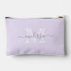 NewParkLane - Elegante bolsa minimalista de accesorios en lavanda, con su nombre y monograma en una moda y tipografía clásica. Fácil de personalizar en Zazzle con su propio texto para un diseño personalizado. Todos los estilos, colores y tamaños de texto se pueden modificar para adaptarlos a sus necesidades. El color de fondo también se puede cambiar fácilmente.