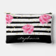 Esta elegante bolsa accesoria incluye flores color agua rosa con rayas negras y un patrón de confeti dorado. Añade tu nombre al frente para personalizar.