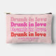 Bolsa de accesorios rosa personalizada para despedida de soltera. Este diseño de moda presenta la frase "Borracha de amor" en una fuente retro elegante, con mucho espacio para personalizar con el nombre de la novia y la fecha o ubicación junto con un nombre personalizado en la parte posterior. Favor perfecto para su evento para agregar diversión y estilo.